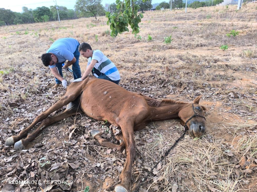 O animal foi localizado nesta quinta-feira (18) no setor Milena II, após denúncia feita por um morador. O município informou que o cavalo ainda não foi levado para o abrigo, pois ele estava debilitado e não teria como transportá-lo. No bairro, ele foi colocado em um local com sombra, medicado, recebeu água e comida.