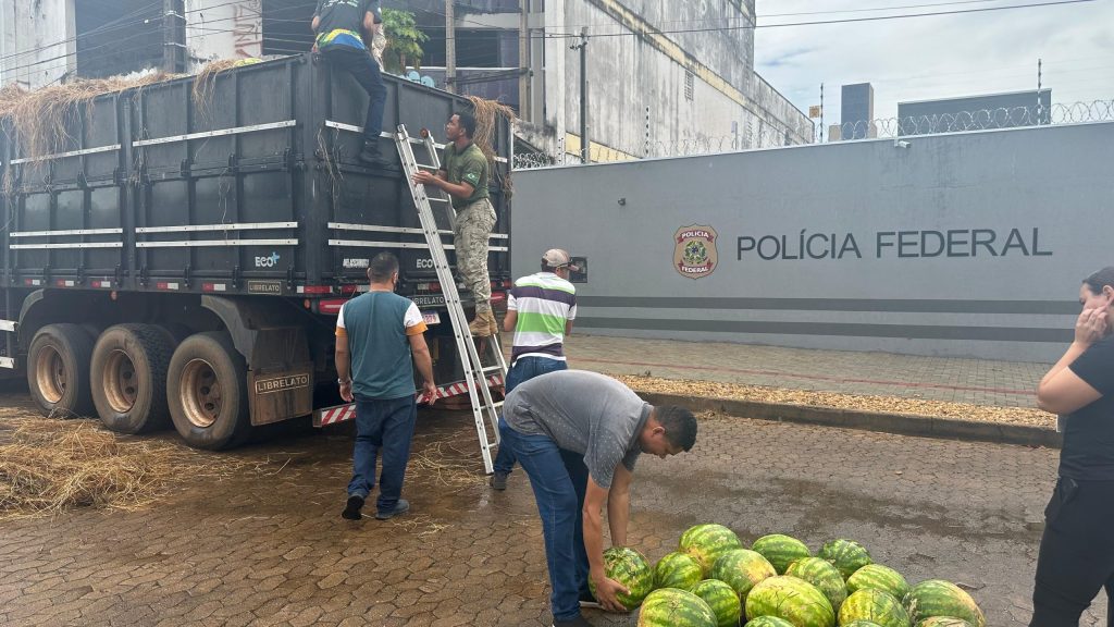Cerca de 30 toneladas de melancia encontradas junto com pacotes de cocaína foram doadas para escolas em Palmas nesta sexta-feira (11). Segundo a Polícia Federal, as frutas foram apreendidas no contexto do tráfico de drogas e a doação ocorreu para evitar o perecimento e desperdício.