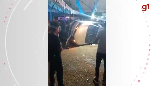 Testemunhas informaram aos policiais que uma das vítimas estava em cima do capô do veículo, quando o motorista acelerou em direção a tenda onde estava acontecendo a festa.