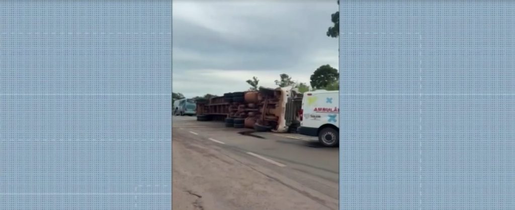 Participe do canal do g1 TO no WhatsApp e receba as notícias no celular.O acidente aconteceu na quarta-feira (2) próximo ao trevo de acesso à Tupiratins. Alfizio dirigia um caminhão que tombou na via após a batida. O estado de saúde do motorista do ônibus não foi informado.