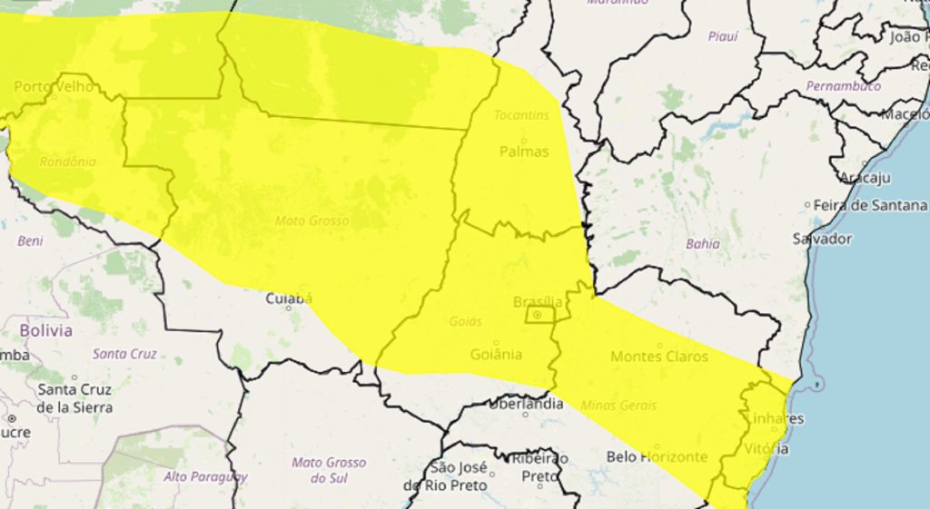 Em Palmas, a temperatura varia entre 24 °C e 32 °C. A cidade está sob alerta de tempestade, com possibilidade de ventos de até 60 km/h e queda de granizo.