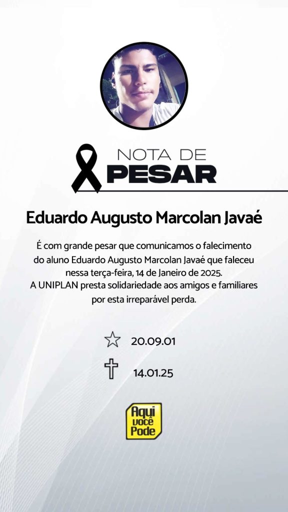 O Centro Universitário Uniplan e a atlética Severus, do curso de Farmácia, emitiram notas lamentando a morte do estudante nas redes sociais.
